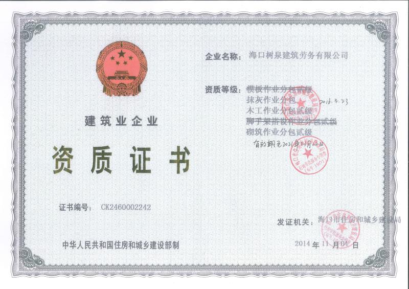 ??跇淙ㄖ趧沼邢薰境闪⒂?011年,公司位于???,其前身是一家專業建筑施工隊,自2004年即開始在海南從事建筑勞務施工。自成立至今,公司已經擁有一支科學管理、質量過硬、能打硬仗,搶工期的專業隊伍。能獨立承擔大中型工業與民用建筑 、室內外裝修、各類機電設備安裝工程。代表工程有海口濱海華庭、三亞時代海岸T01/02/04/05棟高層、合肥東海花園二期、陵水富力灣B區高層、三亞金中海(酒店)、瓊海大印經典花園、海口環球海景大酒店(四星級酒店,在建中)、陵水珍珠大廈(五星酒店)、??谌f達廣場、美蘭機場二期。